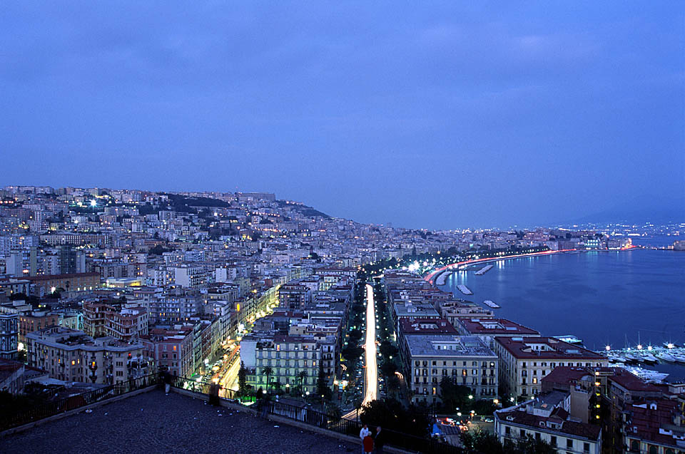 左の高台は、サン・マルティーノがこれも照明でナポリを祝福するように光っている。