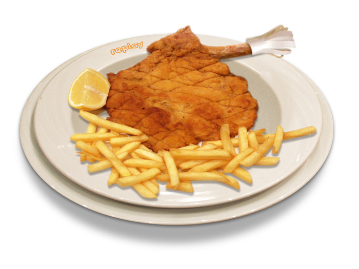 で、どこがウィーン風かといえば子牛のあばら肉ではなく腿肉や肩肉を薄く切ってさらに薄くたたきのばしてパン粉をつけて油であげる、というものです。