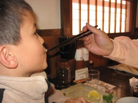 蜆を食す豚カツならぬ豚児