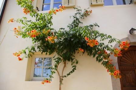 教会の向かいの家に植えられていたトランペット・ブルーメ。